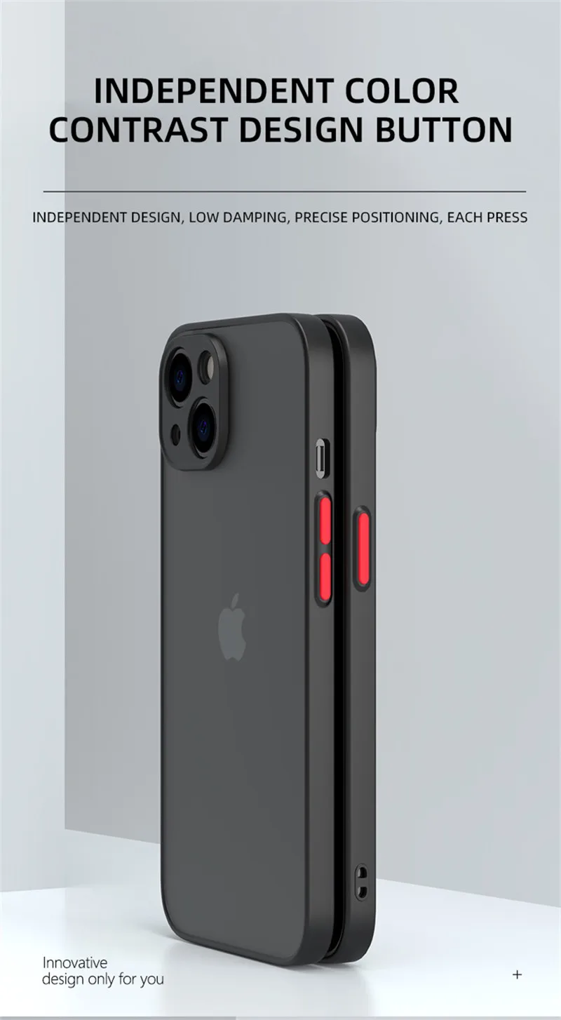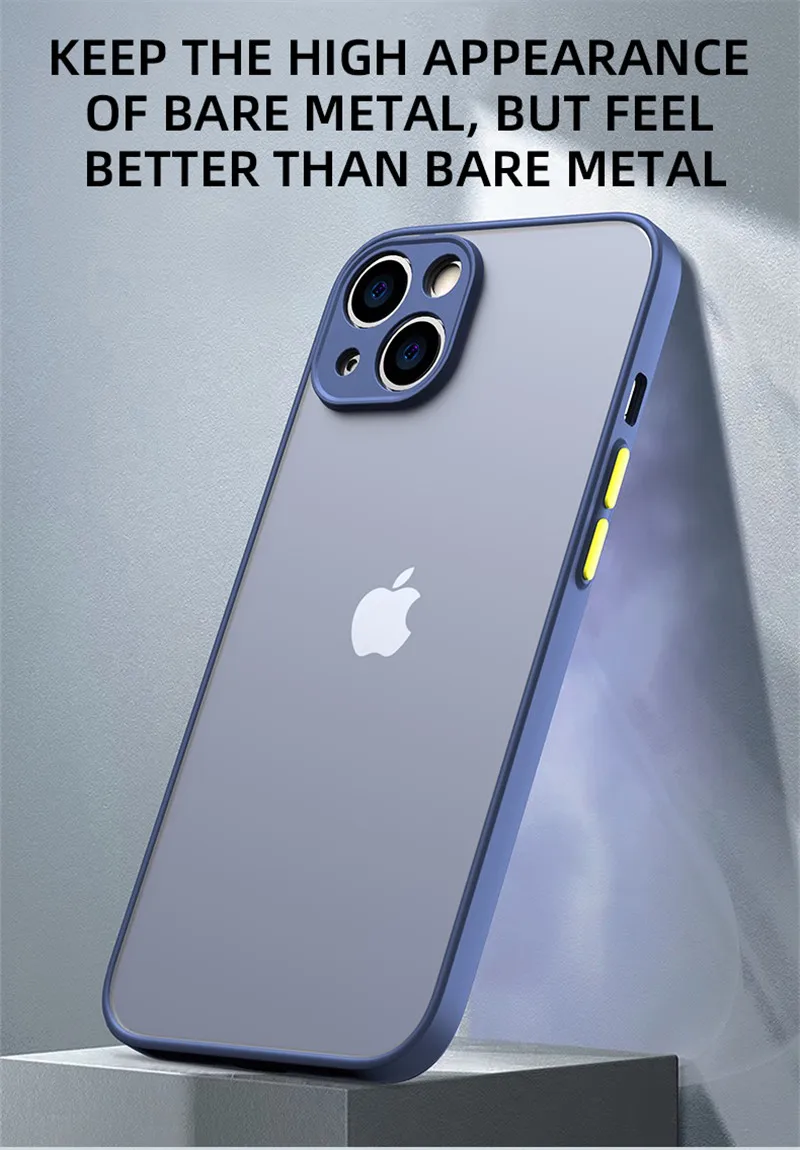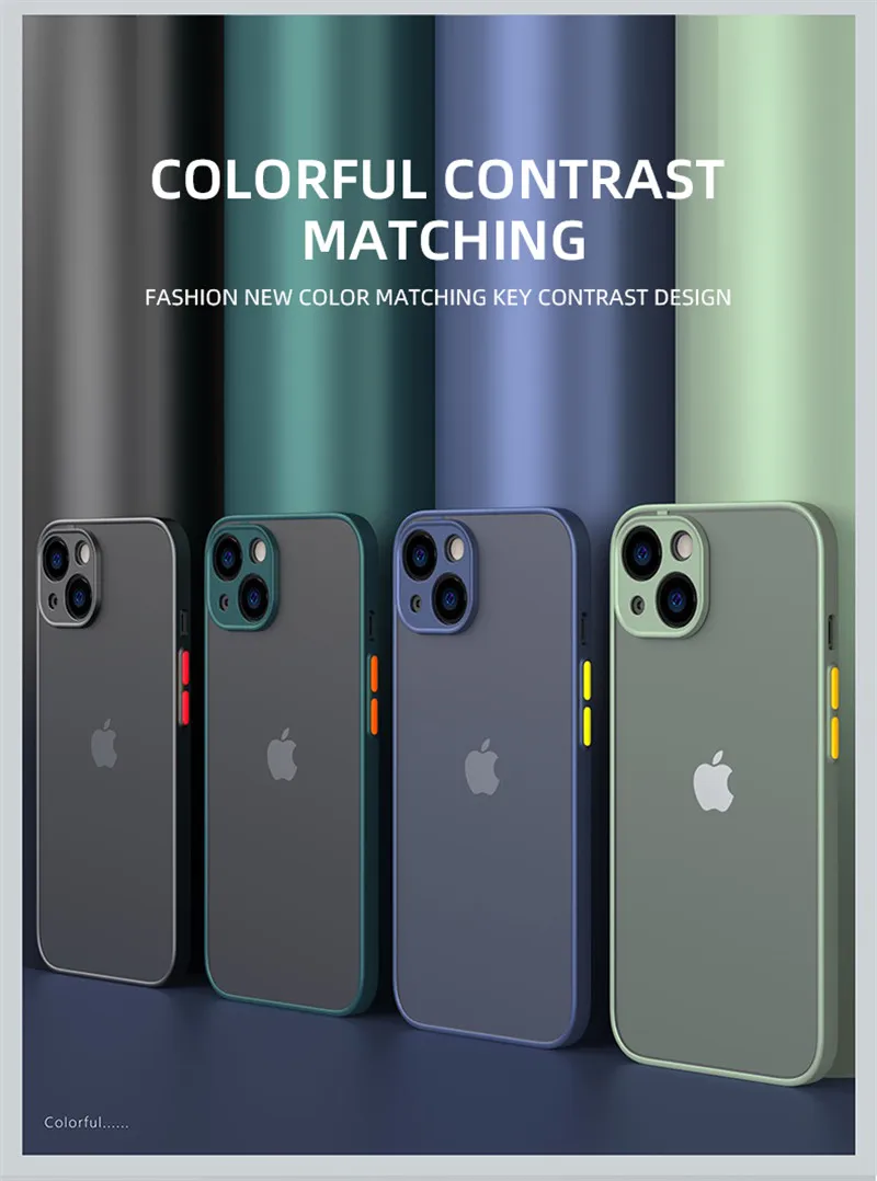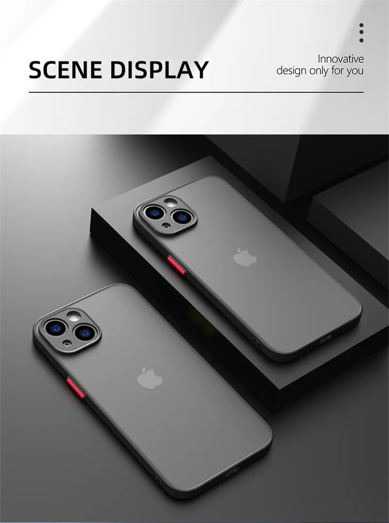 Capa mate de armadura à prova de choque para iPhone 14 13 12 11 Pro Max Mini XR XS X 7 8 Plus Silicone Bumper Clear Hard PC Capa