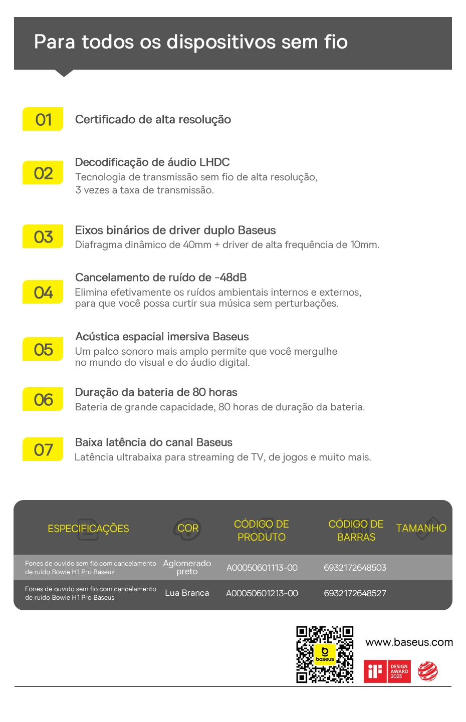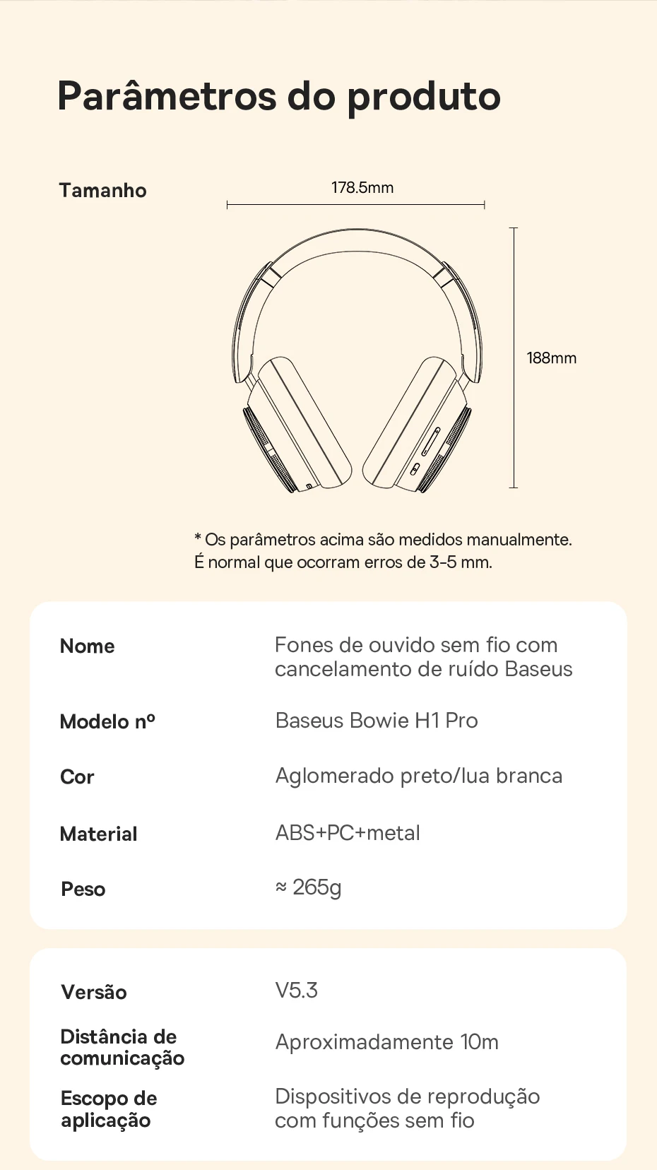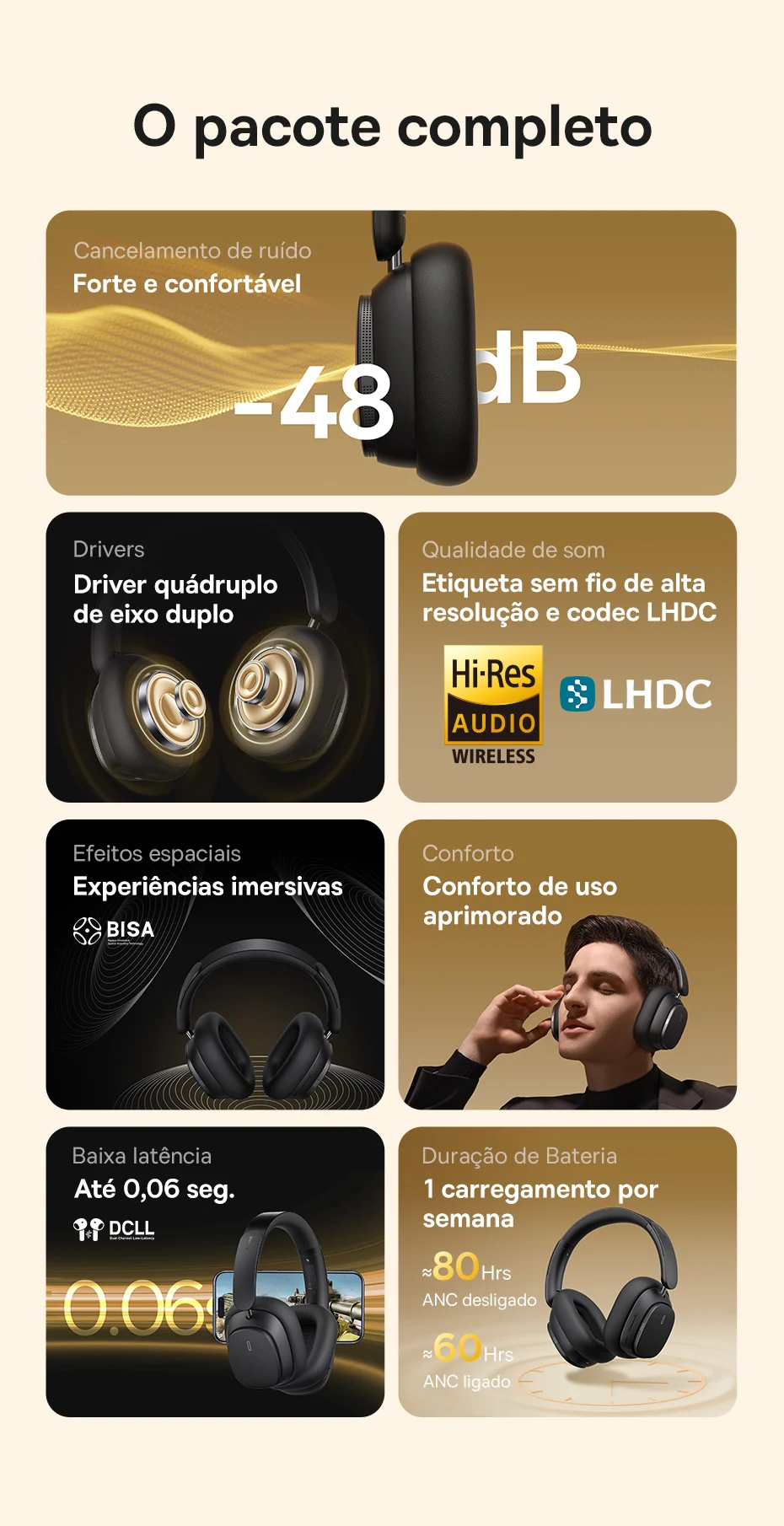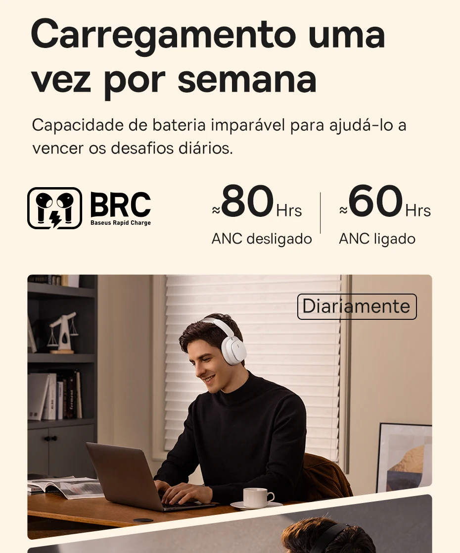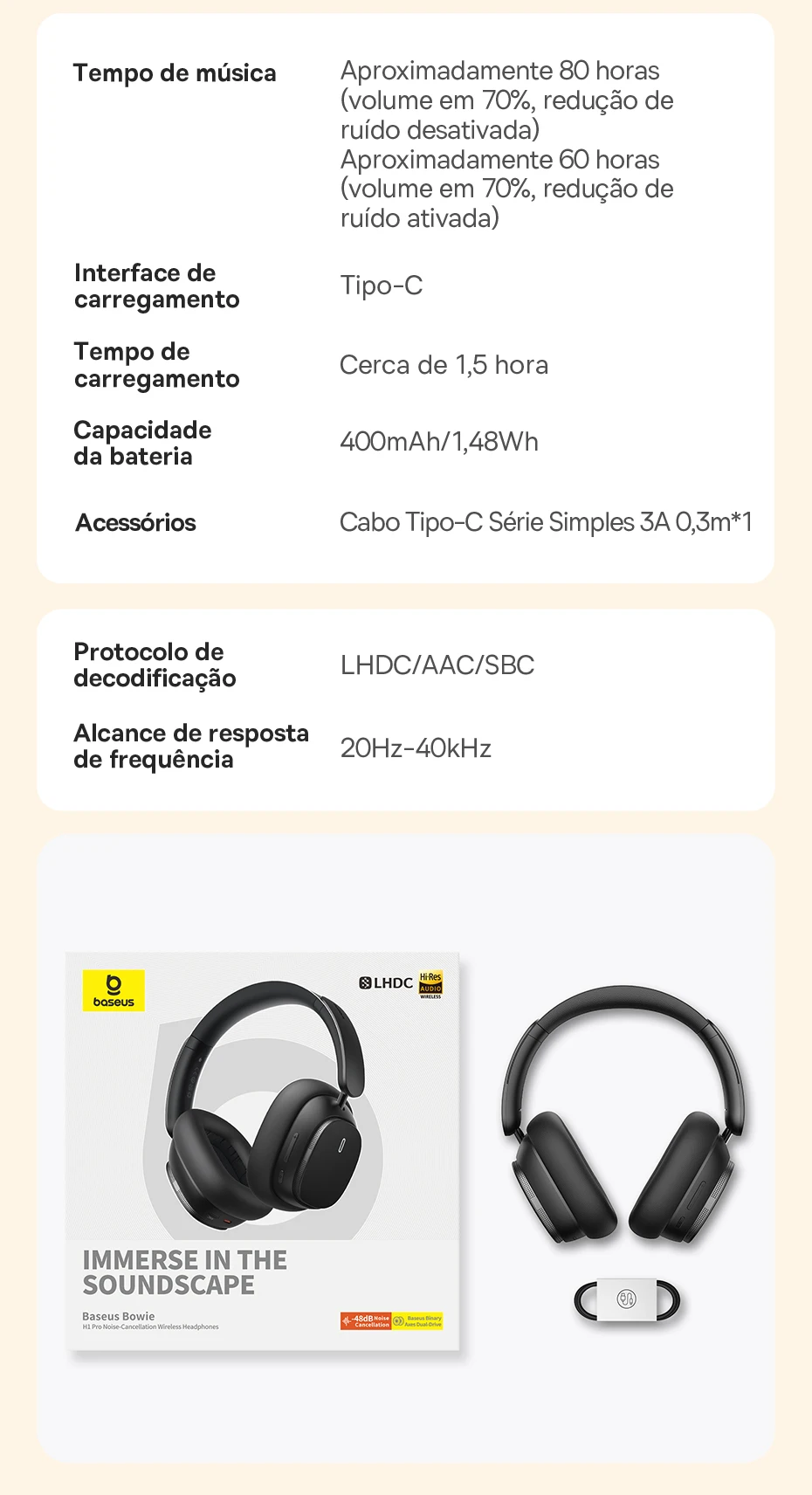 Nome: Baseus Noise-Cancelamento Wireless Headphones