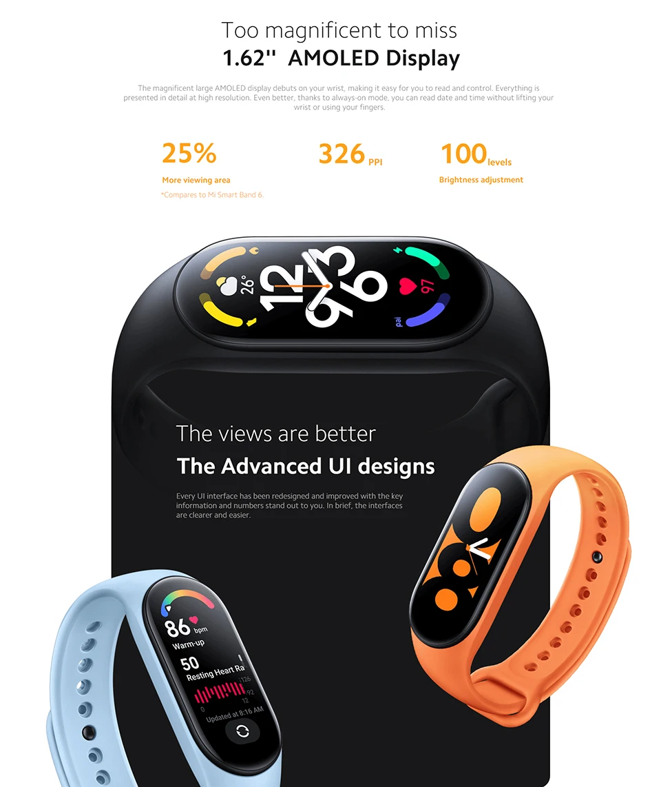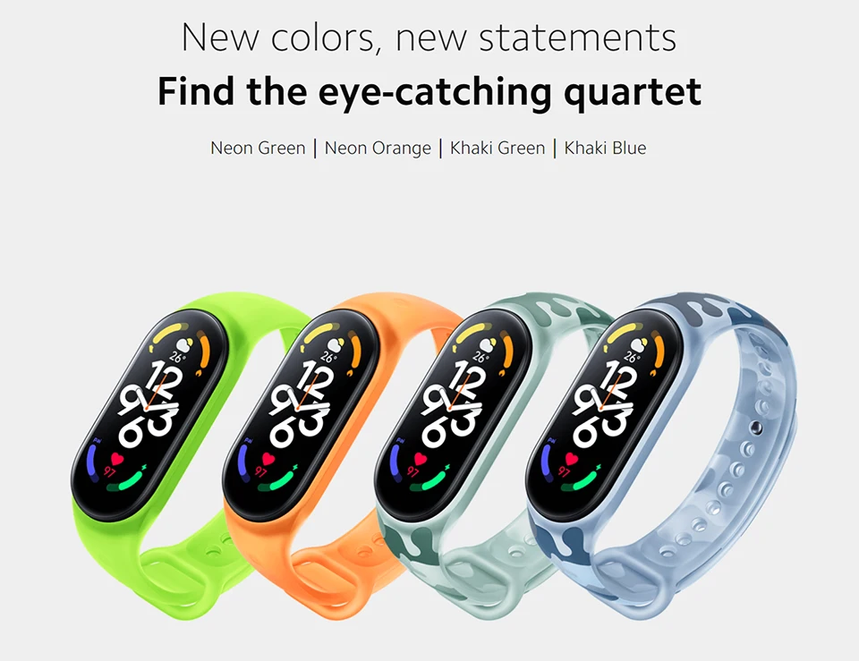 * Xiaomi Smart Band 7 vem com uma pulseira preta, tiras de outras cores devem ser compradas separadamente. As cores podem variar dependendo da localização