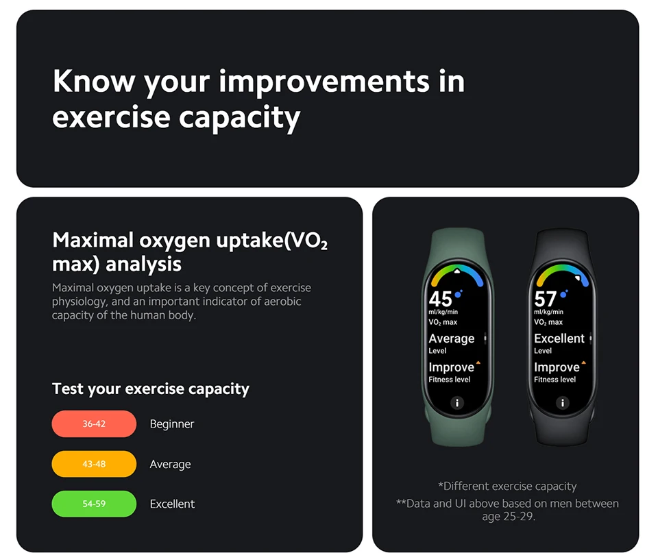 * Os dados de análise e interfaces mostradas acima são para fins ilustrativos. A análise pode variar dependendo da idade do indivíduo, sexo e outras condições, incluindo mas não limitado a padrões de exercício e cargas. Todos os resultados da análise são apenas para referência.